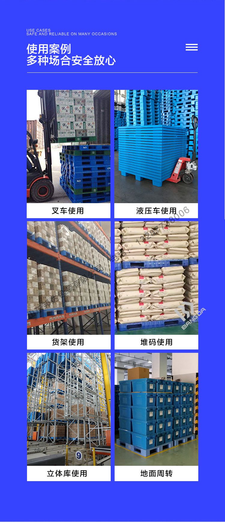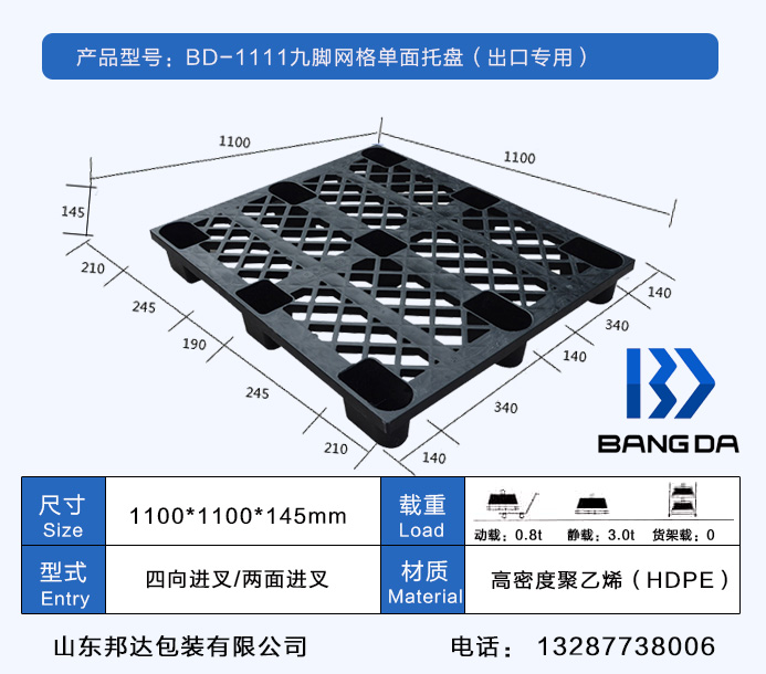 注:九腳網格托盤內部可加入鋼管,是為了達到增加承載的目的,延長托盤的使用壽命,塑料托盤如要在低溫環境中長期使用,要選擇全新料生產的產品。
