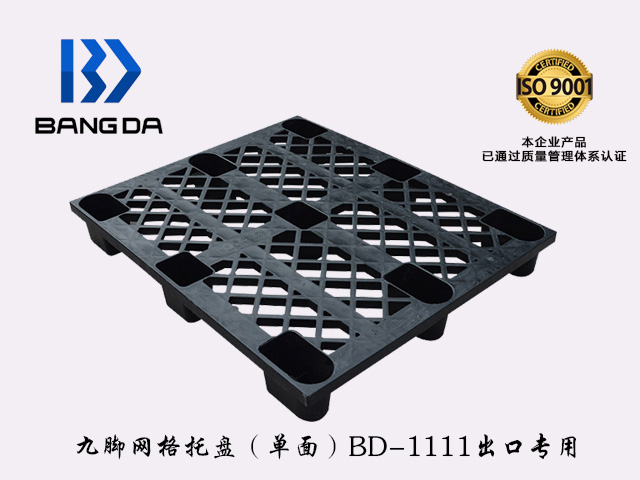 九腳網格塑料托盤的主要材質就是用聚乙烯( PE/PP )等熱塑性材料,加上一些改善性能的添加劑,通過注塑工藝加工而成;主要的適用范圍有:食品醫藥化工紡織汽配廠等行業倉儲物流運輸用;由于網格托盤比較輕,所以不易用于上貨架或者較重貨物的周轉使用,大多情況下九腳網格塑料托盤都是用來倉庫貨物墊倉板防潮使用,對于輕型貨物的周轉也可。